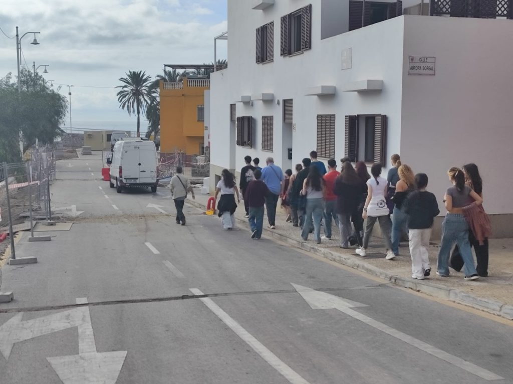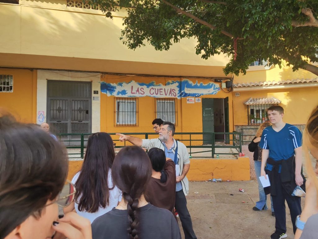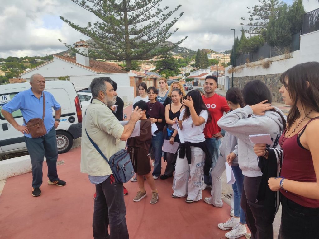 El 4 de noviembre el alumnado y profesorado del IES Mediterraneo salíó junto con dos miembros de la Plataforma Vecinal por Nuestra Identidad, a recorrer el barrio con un mapa topográfico en mano, para fotografiar los lugares más emblemáticos de la historia de la barriada. Iniciamos la ruta en las calles que dieron origen a la historia del barrio; calle Calvario y calle Olivar. En dos horas hicimos la mitad del recorrido, hasta el arroyo Jaboneros, desde el puente del jabegote mirando al monte San Antón. Quedamos emplazados para continuar con esta actividad que tendrá su resultado en las clases de arte en el instituto.